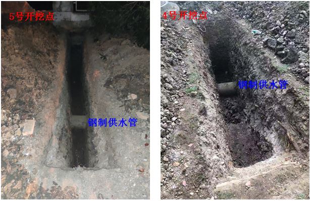 當(dāng)聲源信號比較復(fù)雜無法弄清楚管道的連接關(guān)系時(shí)可采用釬探或者開挖方式弄清管道連接關(guān)系;